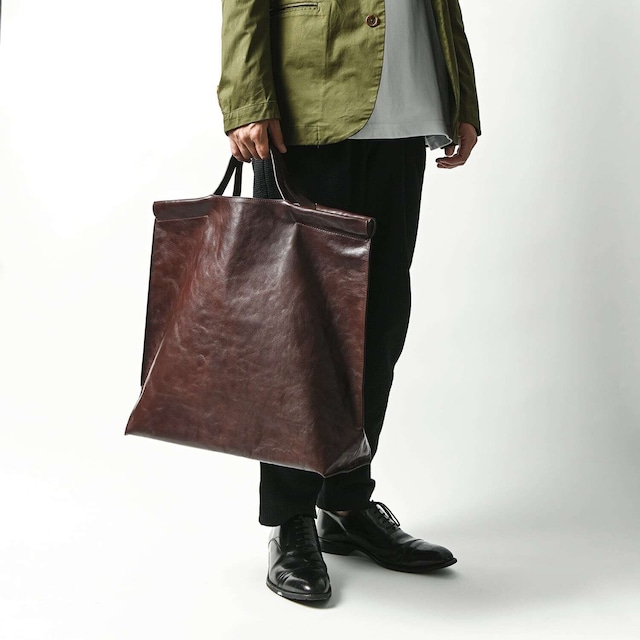 ファッションを選ばないシンプルさで、 荷物が多くても少なくてもかっこよく持てる2wayバッグ クラッチ&トートのラージサイズ ハンドル部分が輪の設計になっており、 通常のトートとして使用するときはツーハンドル。 ワンショルダーとして使用するときは片方だけ伸ばしてワンハンドルにできます。 クラッチとして使用するときは横から出してストラップとして使用することもできます。 口元は開閉に手間がかからないファスナーレス。ワンアクションで荷物を取り出せます。 内装ポケットは下部に集約することで、防犯性を高め、中身の飛び出しやクラッチバッグとして使用するときに内容物が邪魔にならないデザインです。 クラッチバッグとして使用するときは中央付近で折りたたんで持てます。 ポケットは正面側に3つのオープンポケットがついており、背面側に2つのかぶせポケットがついています。 背面側は一見すると、革のパーツがついているだけに見えるのですが、このパーツがかぶせパーツになっており、持ち上げると、ポケットが現れます。このポケットの手前側にさらにかぶせポケットが隠されていて、持ち主だけが知る、秘密のオーナーズポケットとなっております。 通帳・パスポートなどの取られたくない大事なものを収納できます。 底板は用途に応じて外せるよう投げ込むタイプのものがついています。 メイン素材はインドバッファローレザー”コロラド”。豊かな表情で経年変化が楽しめて、耐久性が高くて軽量、優秀な素材です。革の詳細はcontents内の記事でご覧になっていただけます。 メイン素材はインドバッファローレザー”コロラド”。豊かな表情で経年変化が楽しめて、 耐久性が高くて軽量、優秀な素材です。革の詳細はcontents内の記事でご覧いただけます。 メイン素材が耐久性の高い素材のため、内装は強度のあるキャンバス生地を採用しています。 金具やファスナーなど、バッグを使用していくうちに最初に破損するパーツやデザインを除き、長くご利用いただける商品に仕上げました。 端部の処理は全てヘリ返し処理にこだわり、革の切れ目に塗るコバ塗料は一切使用していません。 樹脂製のコバ塗料は、使用していくうちにコバ塗料は新品時にはとてもきれいなのですが、樹脂を使用するものが多く、長く使用していくと割れていってしまう為、コバ塗料は使用せず、ヘリ返し処理を施しました。 相棒と呼べるように長く、そしてどこへでもご利用いただけますと幸いです。 商品仕様 品番: W3003 本体サイズ: タテ42cm×ヨコ40cm×マチ15cm ハンドル立ち上がり:トート 11cm・ワンハンドル17.5cm・クラッチストラップ12.5cm 内装:オープンポケット×3(正面3) かぶせつきポケット×2(背面2) 重さ:本体700g 底板80g 形:クラッチ&トートバッグ(2way ラージサイズ) カラー:2色(BLACK/WINE) 生産国: インド 素材: インドバッファローレザー