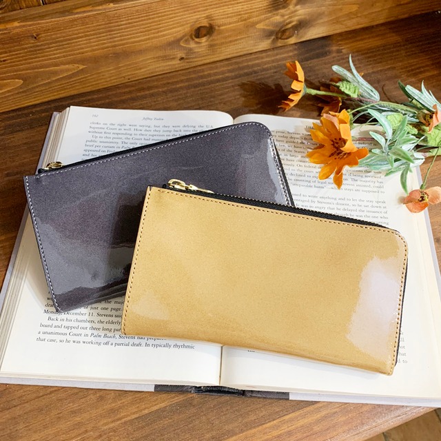 【牛床革】エナメルL字型折り畳み財布〈4色展開〉 レザーウォレット 牛革 エナメル 2つ折り財布 L字 オールレザー サスティナブル M0083