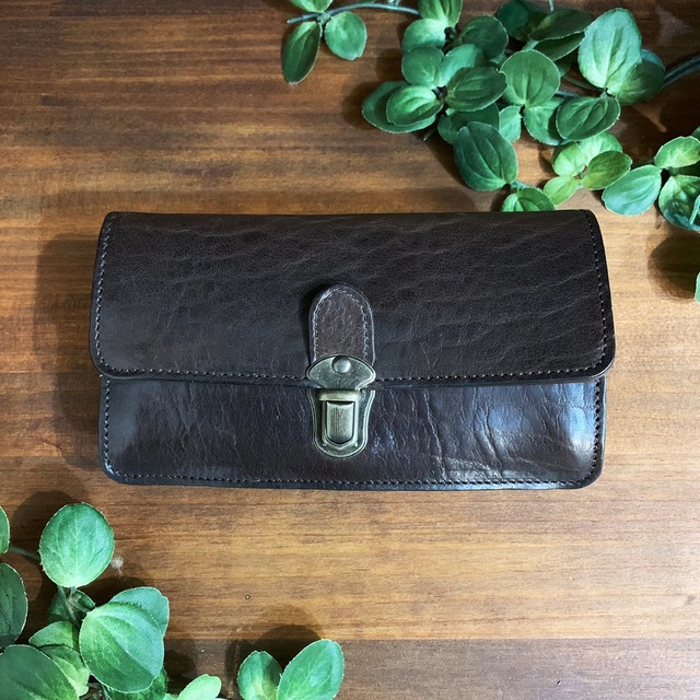 貴重で珍しい素材「ブル(雄牛)」の革を使用した、L字型のコンパクトウォレットです。 「お札・カード・小銭」をスッキリと収納することができます。 マチはありませんが、見た目以上に量もしっかり入ります。大きなお財布を使わない時や、ちょっとおでかけしたりする時にも便利です! ブルは荒々しい表情で肉厚な革ですが、しなやかさもあり、とても強度が強いのが特徴です。使い込むほどにツヤが増し、革質も柔らかくなっていくので、経年変化を楽しみながら長く使って頂けます。ずっしりとした重厚感のある個性派素材ですが、他の革にはない味わいを楽めまず。すべてが1点もののようなくらい、革の表情がそれぞれ違うのもブルの魅力です。 お手入れも不要なので、ぜひ素材感を楽しみながらお使いください。 ブルは荒々しい表情で肉厚な革ですが、しなやかさもあり、とても強度が強いのが特徴です。使い込むほどにツヤが増し、革質も柔らかくなっていくので、経年変化を楽しみながら長く使って頂けます。ずっしりとした重厚感のある個性派素材ですが、他の革にはない味わいを楽めまず。すべてが1点もののようなくらい、革の表情がそれぞれ違うのもブルの魅力です。 お手入れも不要なので、ぜひ素材感を楽しみながらお使いください。 【素材について】 こちらの素材はシボ(革のシワ)の表情、使い始めの柔らかさに個体差があります。オンラインショップでは、革の表情をお選び頂くことができませんので、予めご了承下さいませ。 商品仕様 商品名:【牛革(ブル使用)】L字型コンパクトウォレット<2色展開> 品番:W4344 サイズ:タテ 8.5cm×ヨコ 11cm 重さ:約70g 形:L字型ウォレット/ 革小物 カラー:2色(ブラック/ブラウン) テイスト:WynnBrowne(WynnBrowne) 生産国(素材):日本(牛革) ※お客様のモニターによって多少色が異なることがございます。ご了承ください。 ※在庫のない色もお探しいたします。お気軽にお問い合わせください。