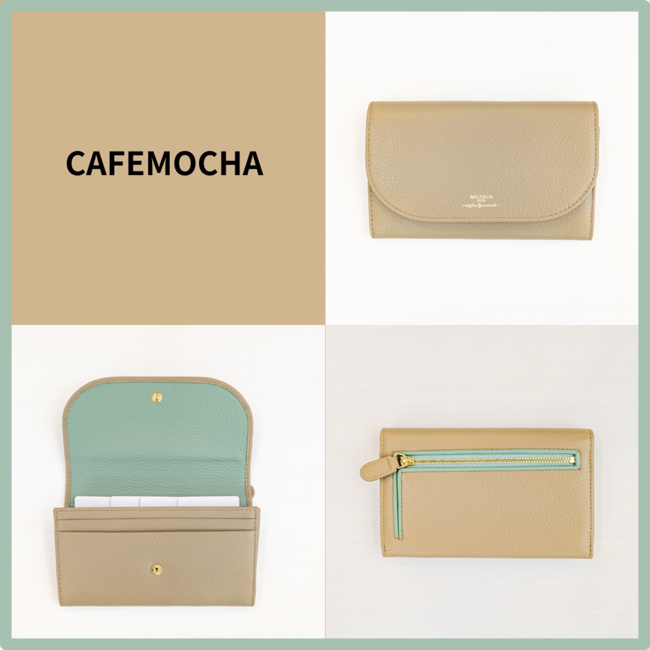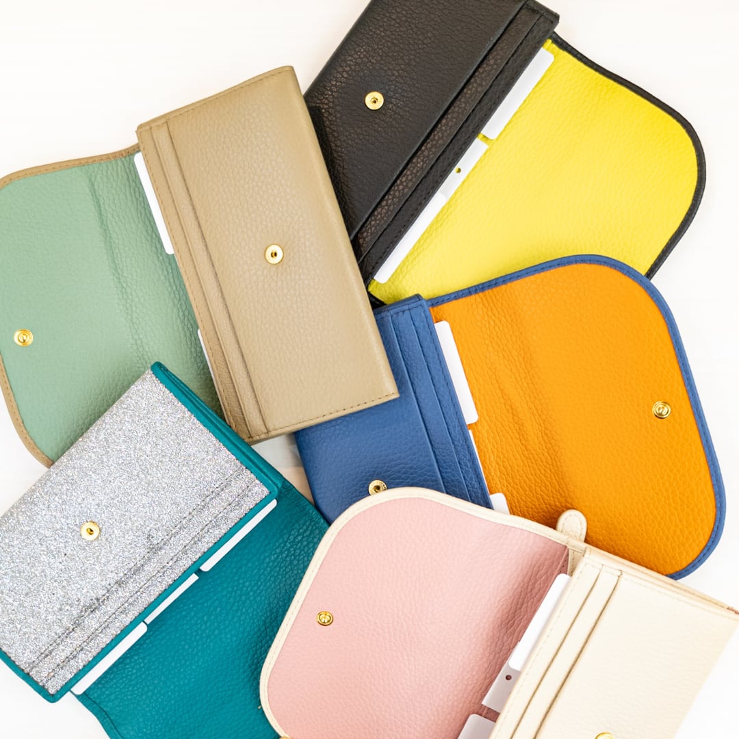 コンビになる2色は、お財布を開けた時に目に飛び込んでくる色が特に明るく元気が出るものになるよう配置されており、お財布を開ける、というごく当たり前の動作にも、ほんの少しのハッピーが芽生えればいいなと思っています。