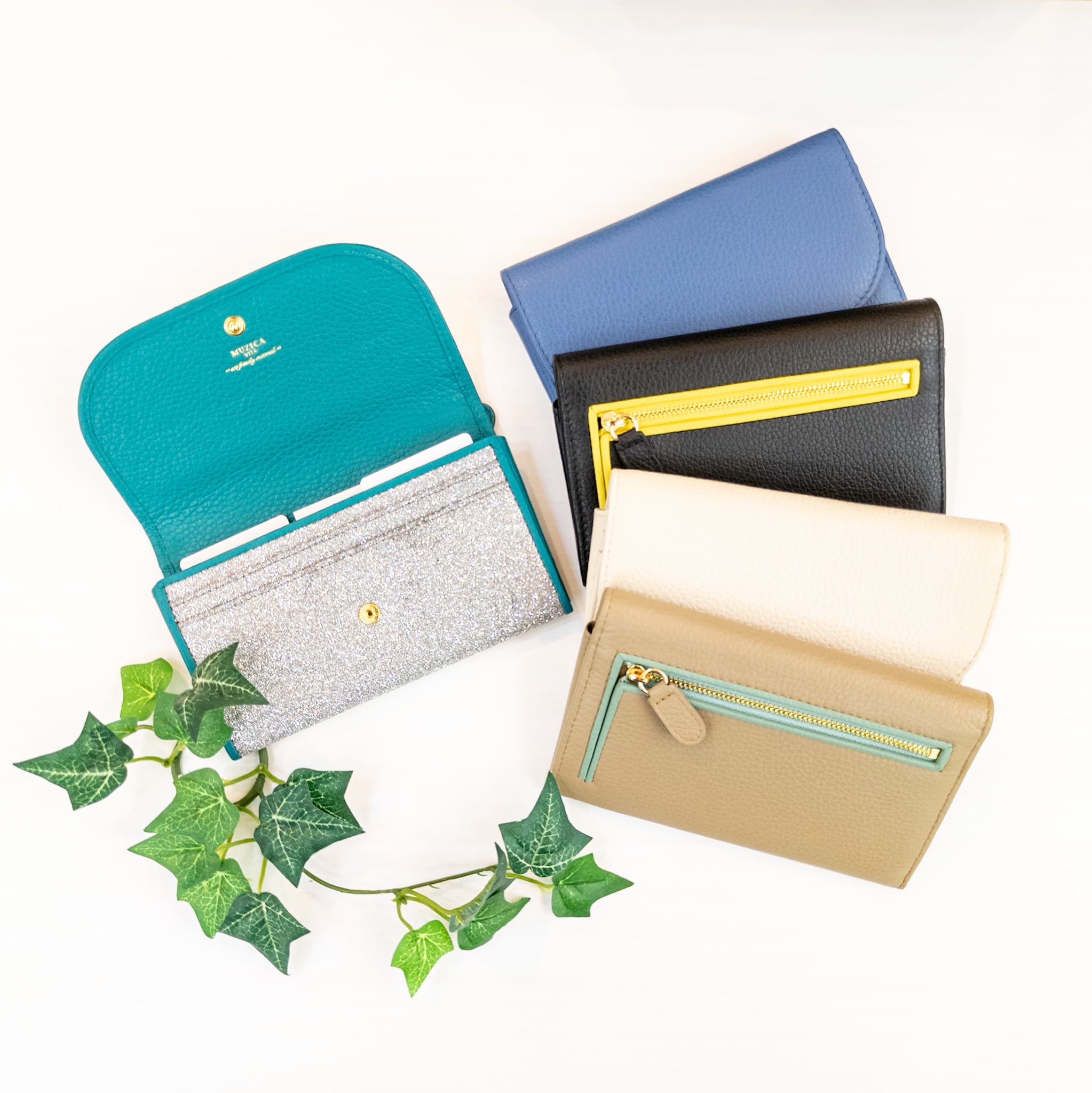 従来の長財布だと小さいバッグに入らないとお悩みの方のために、いつもよりコンパクトに仕上げました。