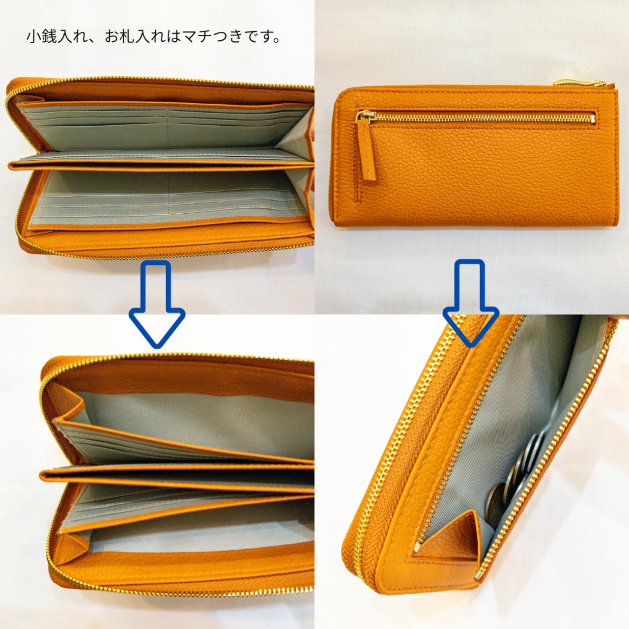 マチを付け、がばっと開いて中を見渡しやすく変更しました。