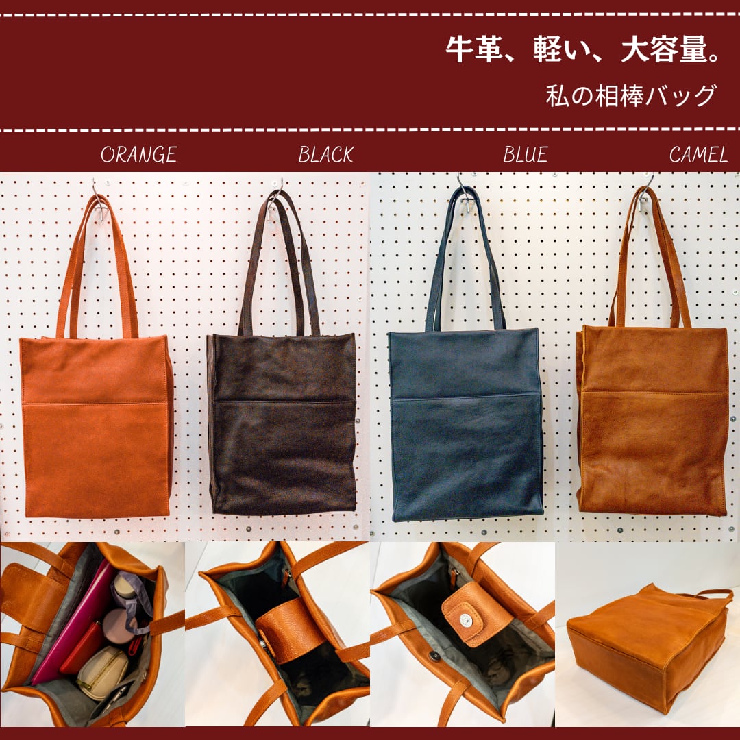 商品名:【コンビ鞣し牛革】縦型スクエアトートバッグ