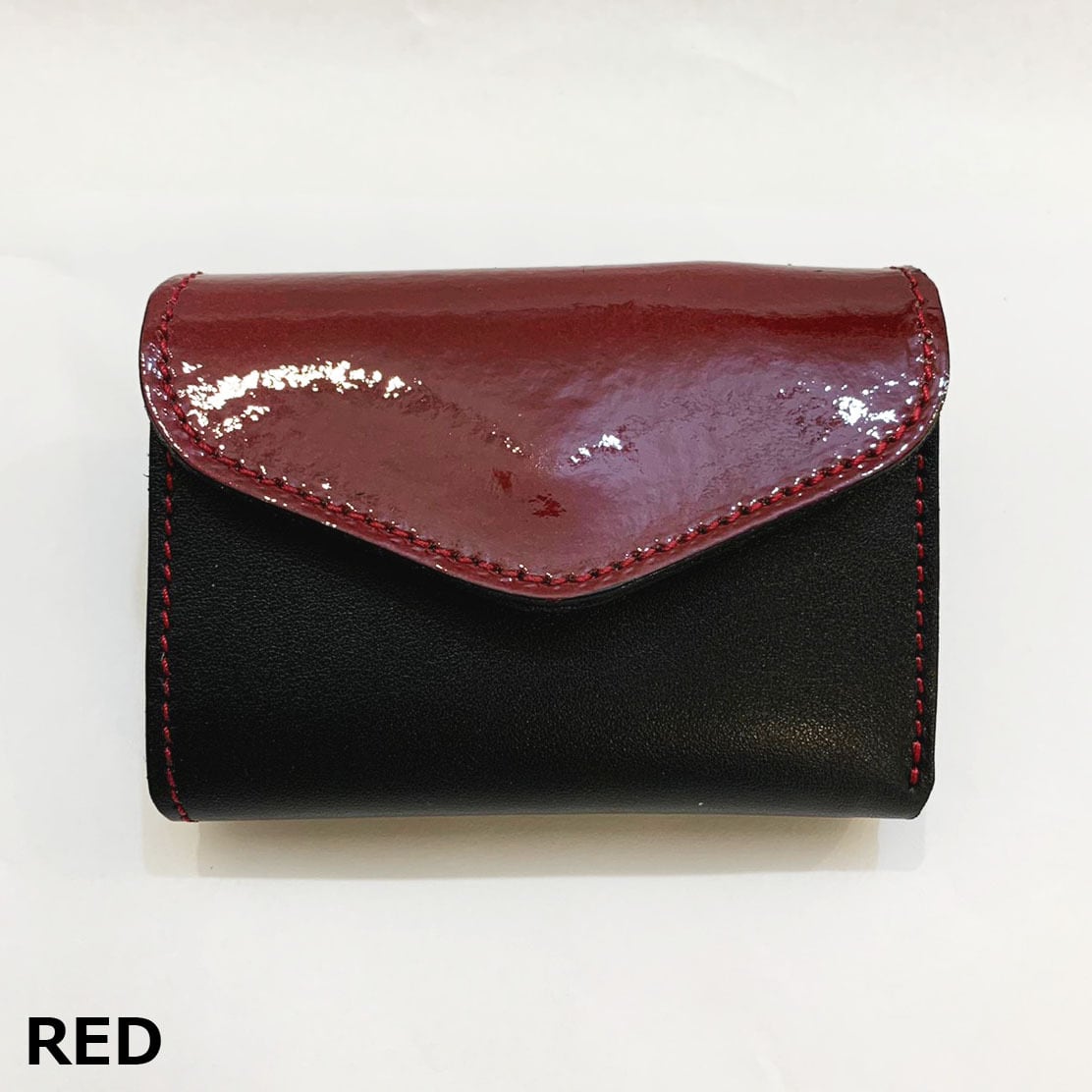 【牛床革】エナメルコンパクト折り畳み財布〈4色展開) レザーウォレット 牛革 レザーエナメル コンパクト 折り畳み オールレザー サスティナブル M0081